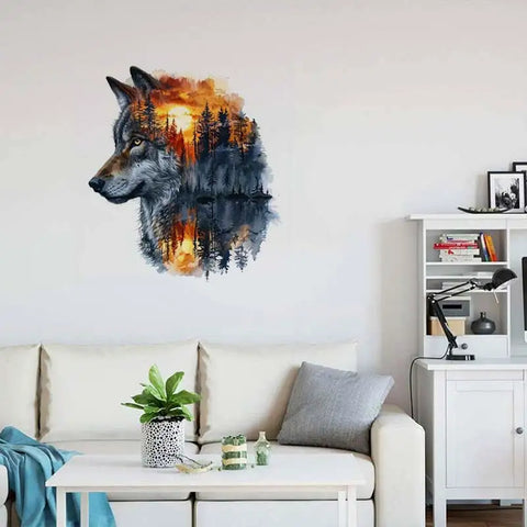Apportez une ambiance de forêt mystique et sauvage à votre maison avec ce sticker mural thématique Loup & Forêt. Ce décalcomanie de Style Cartoon (Style: cartoon) présente un loup dont le corps est rempli d'un paysage de forêt sous un coucher de soleil/une lune aux couleurs vives. Idéal pour la Chambre de Garçon ou le Salon (Living Room Decor). Fabriqué en PVC (Material: PVC), ce sticker polyvalent peut être appliqué sur les murs, les meubles, les carreaux et même les fenêtres (Window Stickers).