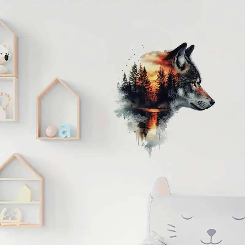 Créez une ambiance forestière enchantée dans votre maison avec ce sticker mural thématique Loup et Forêt ! Ce décalcomanie de Style Cartoon (Style: cartoon) présente un loup dont le corps est rempli d'un paysage de forêt sous un ciel de coucher de soleil (Theme: Animal). Idéal pour la chambre d'enfant ou le salon (Living Room Decor), il est fabriqué en PVC (Material: PVC) et est parfait pour décorer les murs, le carrelage, les meubles, ou même les fenêtres (Window Stickers).