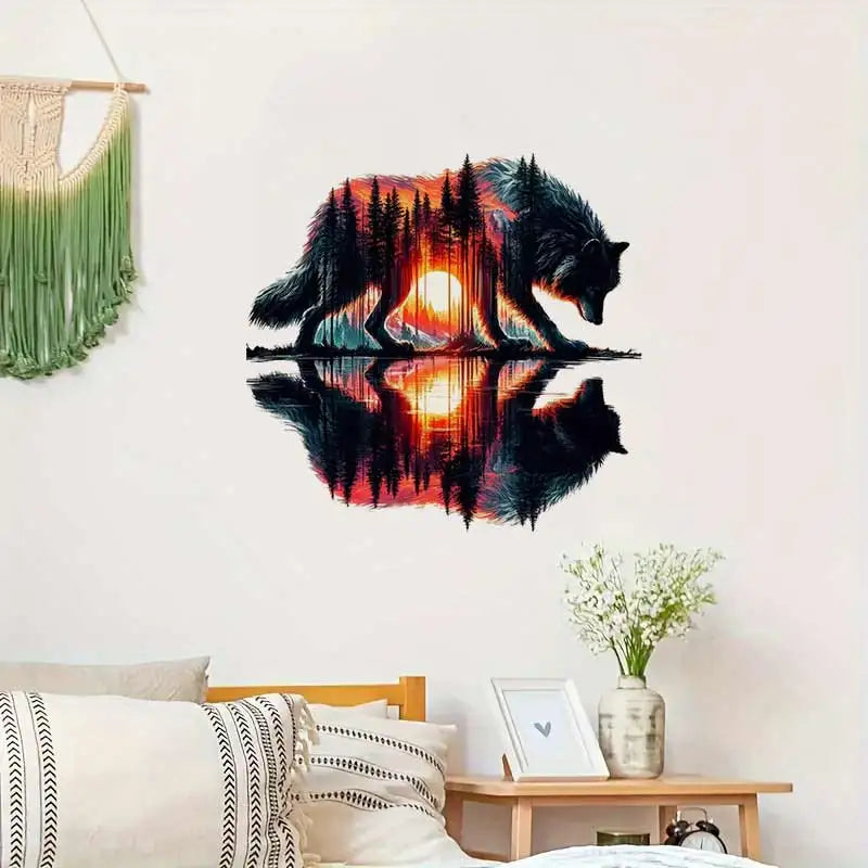Créez une scène captivante dans n'importe quelle pièce avec ce sticker mural style "double exposition". Ce décalcomanie de Style Cartoon (Style: cartoon) présente la silhouette d'un loup en marche, remplie d'un paysage de forêt avec un coucher de soleil ou une lune sur l'eau (Thème Animal). Idéal pour décorer la Chambre, la Salle de Bain ou le Salon (Living Room Decor). Fabriqué en PVC (Material: PVC), il est facile à appliquer sur les murs, les meubles ou les fenêtres.
