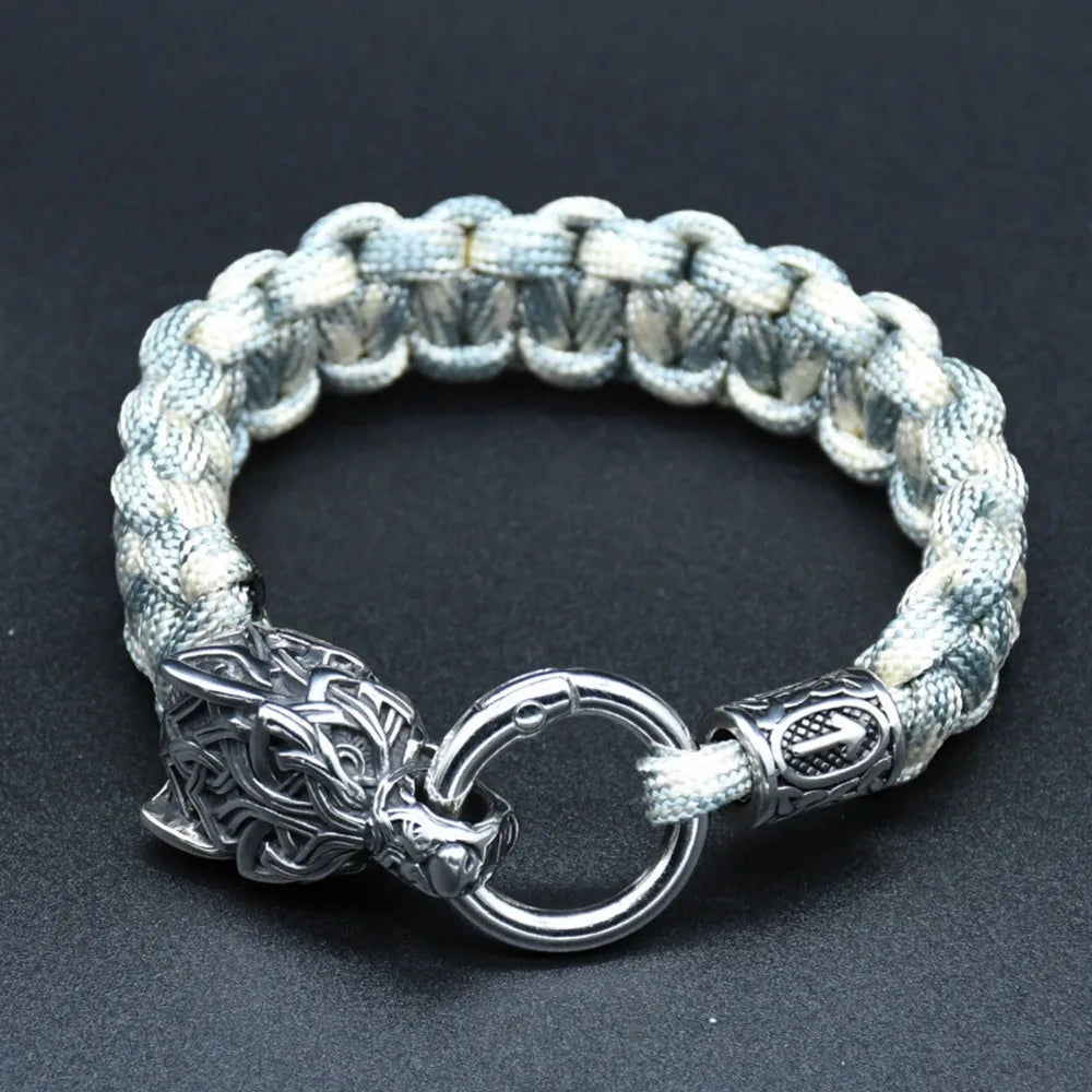 Tressé avec une corde en paracorde de haute qualité (type corde de parapluie), ce bracelet est conçu pour durer. Il est orné d'une tête de loup détaillée en acier inoxydable et de perles gravées de runes nordiques, ajoutant une touche vintage et historique. Son fermoir crochet est pratique et sécurisé. Que ce soit pour une sortie en nature ou un usage quotidien, il saura affirmer votre personnalité. C'est une excellente idée cadeau pour les passionnés du loup ou de l'univers Viking.