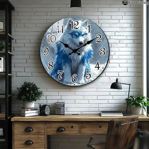 Ajoutez une touche de mystère et de style à votre intérieur avec cette horloge murale silencieuse. Son design saisissant met en scène un loup blanc aux yeux perçants, rehaussé de motifs bleus, créant un point focal captivant dans n'importe quelle pièce. Parfaite pour le salon ou le bureau, cette horloge allie un style moderne à la beauté intemporelle de la nature. C'est le cadeau idéal pour les passionnés de loups et ceux qui recherchent une décoration à la fois distinctive et apaisante.